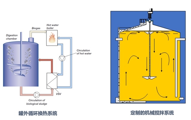 洪桂芳表示:“ANAMET ®厭氧消化技術配套罐外循環(huán)換熱系統(tǒng)和定制的機械攪拌系統(tǒng)。罐外循環(huán)換熱系統(tǒng)溫度控制精確,通常可將厭氧系統(tǒng)控制在正負0.5℃;定制的機械攪拌系統(tǒng)不容易形成短流,讓整個厭氧系統(tǒng)的微生物充分反應,提高微生物反應效率,提高沼氣的產(chǎn)能,進而提高項目的收益。”