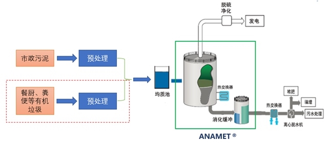 ANAMET ®厭氧消化技術目前已具有40多年的市政污泥等多物料協(xié)同厭氧消化的工程經(jīng)驗,并在國內(nèi)外有很多的應用案例。該工藝被廣泛用于城市固體廢棄物(餐廚垃圾、污泥、廚余垃圾等)、農(nóng)業(yè)廢棄物(秸稈、果蔬、糞便等)以及高濃度工業(yè)廢水及廢渣(酵母廢水、酒糟、醋糟等)等處理領域。
